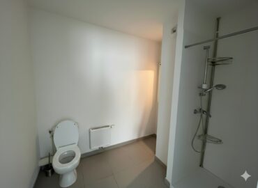 Côté nuit, vous retrouverez une grande chambre avec placard d’environ 12m2 ainsi qu’une salle d’eau avec WC.