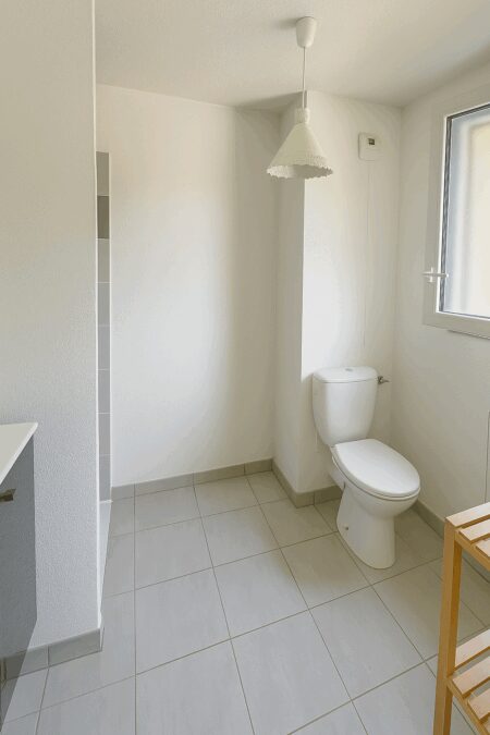 Côté nuit, vous retrouverez une chambre avec placard intégré et une salle d’eau avec WC.