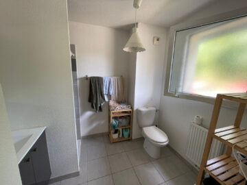Côté nuit, vous retrouverez une chambre avec placard intégré et une salle d’eau avec WC.