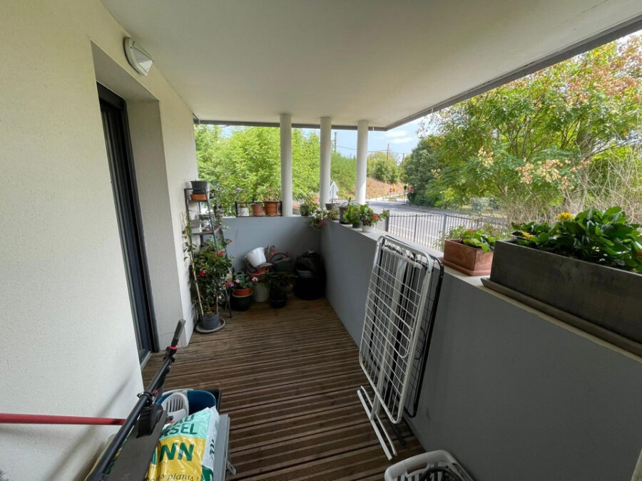 Ce bien est composé d’une entrée avec placard, d’une cuisine ouverte sur le séjour donnant sur une jolie terrasse couverte (loggia).