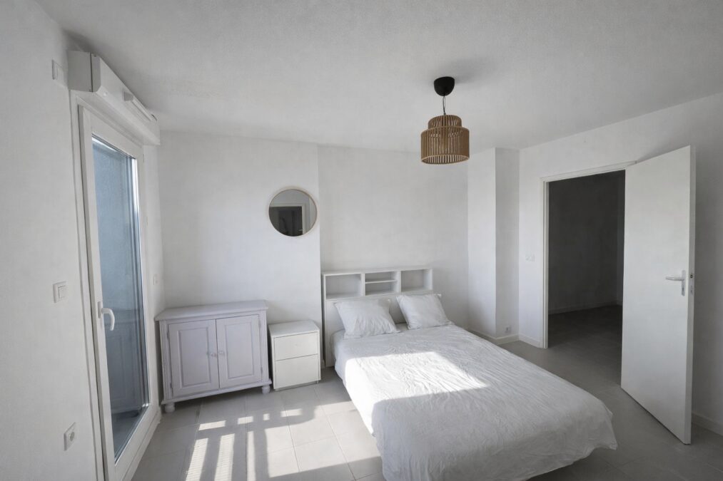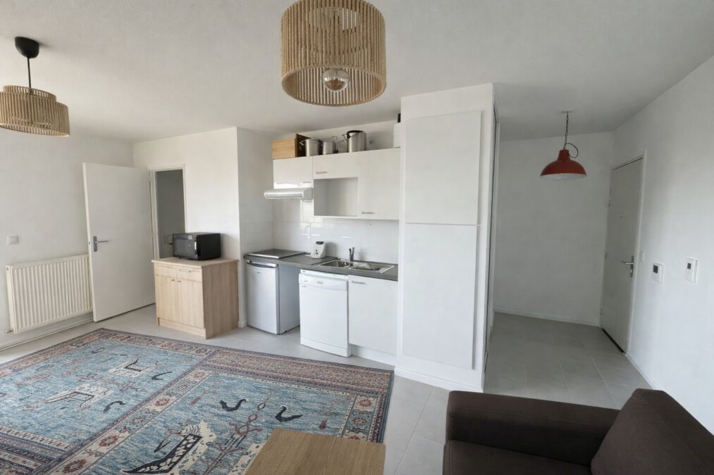 Ce bien est composé d’une entrée avec placard, d’une cuisine ouverte sur le séjour, d’une chambre avec placard intégré et une salle de bain avec WC.