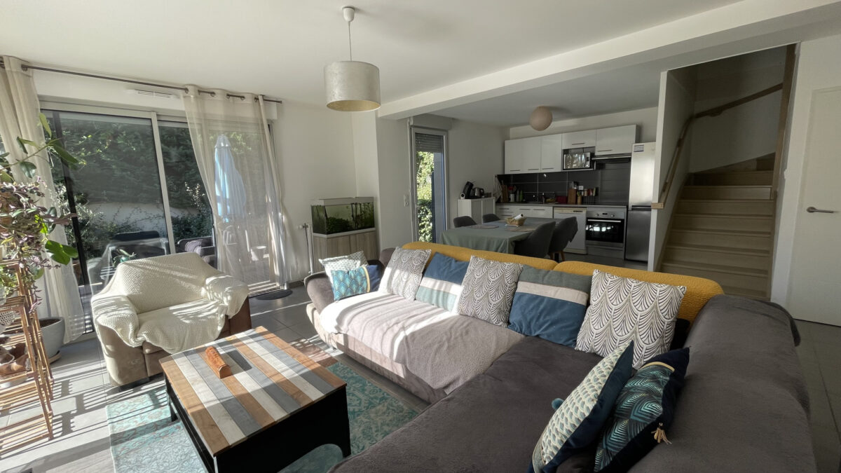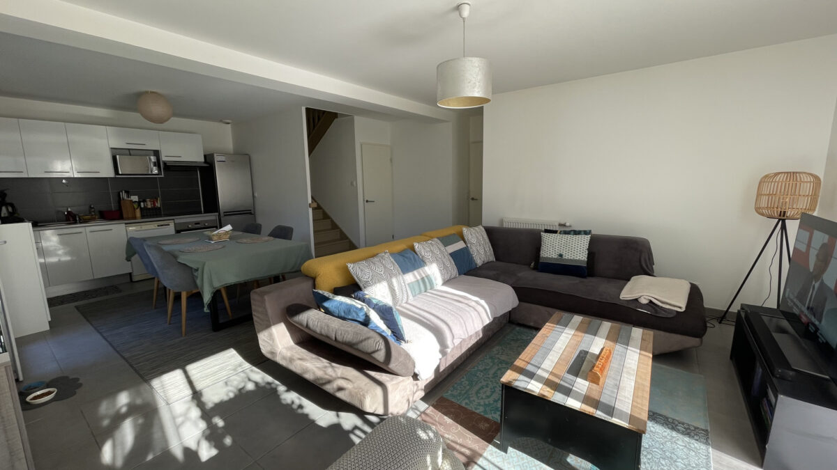 Ce bien est composé d’une entrée avec placard donnant sur un séjour avec cuisine ouverte d’environ 34m2 donnant sur une terrase et jardin privatif d’environ 96 m2. Vous trouverez également au rez-de-chaussé une chambre avec placard de rangement, une salle d’eau avec WC et un garage fermé d’environ 16 m2.