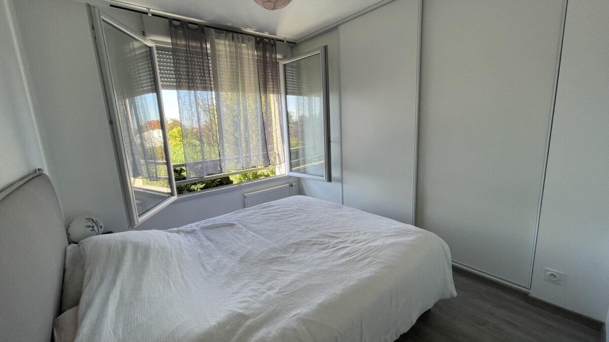 A l’étage, vous retrouverez deux chambres avec placard de rangement dont une d’environ 11m2 et les deux autres d’environ 10 m2 ainsi qu’une salle de bain avec WC. Deux places de parking viennent compléter ce bien.