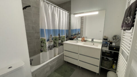 A l’étage, vous retrouverez deux chambres avec placard de rangement dont une d’environ 11m2 et les deux autres d’environ 10 m2 ainsi qu’une salle de bain avec WC. Deux places de parking viennent compléter ce bien.