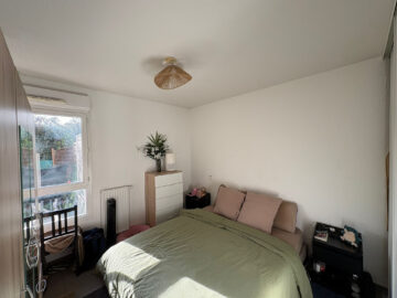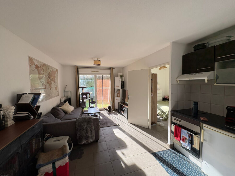 Ce bien est composé d’une entrée, d’une cuisine avec placard, ouverte sur le séjour donnant sur une terrasse d’environ 6m2 et un jardin privatif d’environ 26m2.