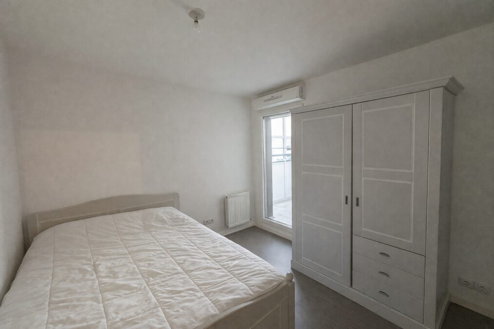 Côté nuit, vous retrouverez deux chambres d’environ 10m2 et 12m2 dont une avec placard et accès au balcon, d’une salle de bain et d’un WC séparé.