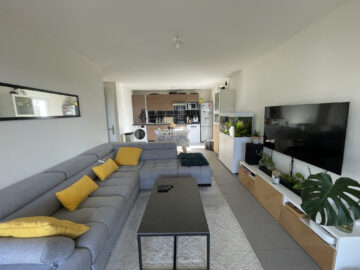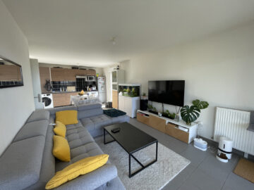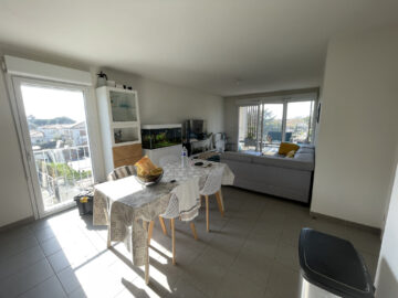 Il est constitué d’un joli séjour-cuisine d’environ 27m2 avec un placard à l’entrée et un accès direct sur une grande loggia d’environ 21m2.