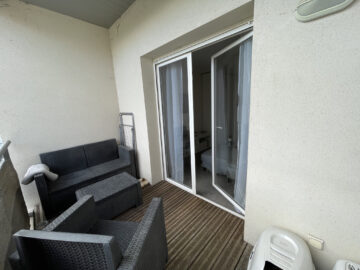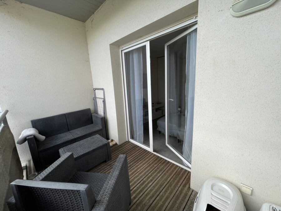 Ce bien est composé d’une entrée avec placard donnant sur un séjour et une cuisine ouverte semi-équipée, le tout donnant sur un balcon d’environ 5m2 sans vis-à-vis esposé est.