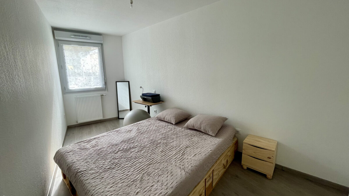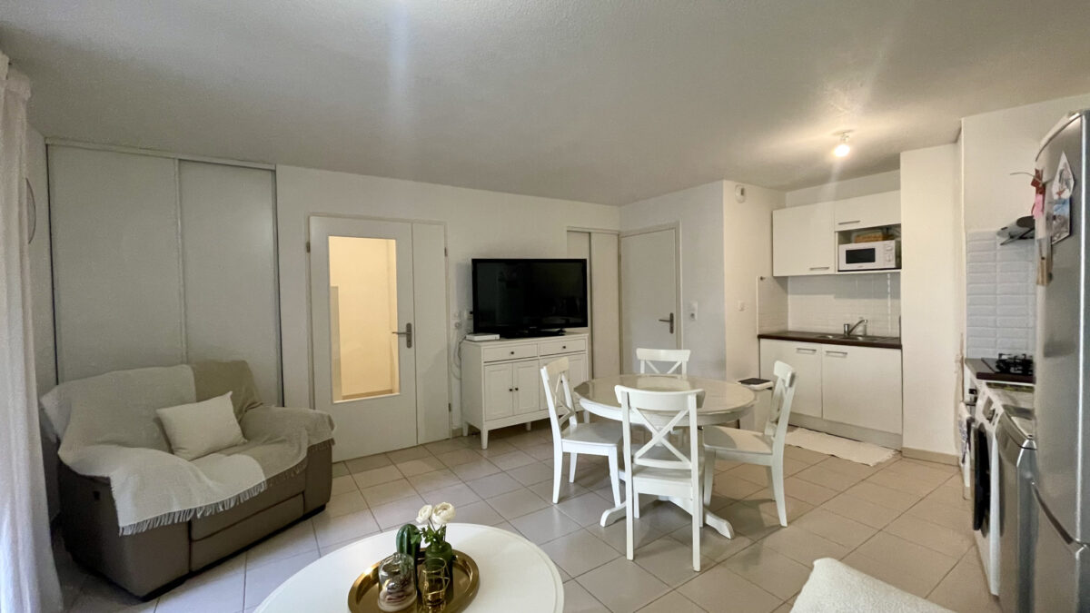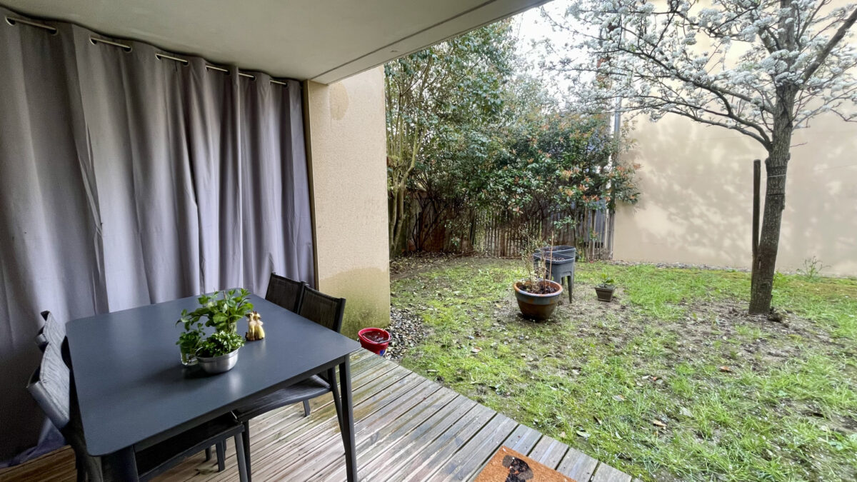 Ce bien est composé d’une entrée avec placard, d’une cuisine ouverte sur le séjour donnant sur une terrasse d’environ 14m2 et un jardin de plus de 54m2 soit plus de 68m2 d’espace exterieur privatif avec une exposition nord-ouest.