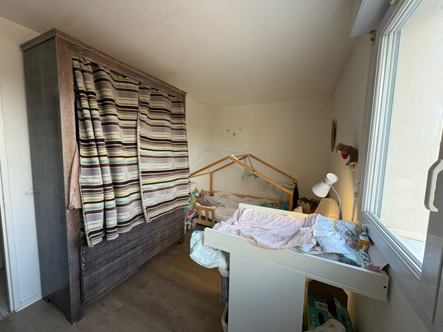 L’appartement se compose d’une entrée, d’un séjour avec cuisine ouverte, l’ensemble étant lumineux et ouvert sur une terrasse. Deux chambres de 12 et de 14 m2, une salle d’eau et un wc séparé completent le bien. Vous bénéficierez également d’un emplacement de parking extérieur privatif et sécurisé.