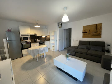 Ce bien est composé d’une entrée, d’une cuisine semi-équipée ouverte sur le séjour d’environ 19m2, le tout donnant sur un balcon d’environ 4m2.