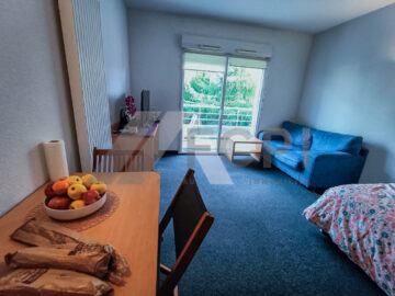 – Appartement T1 au 1 er étage comprenant : une entrée, un séjour avec coin cuisine, donnant sur un balcon de 4,5m2 une salle d’eau avec wc, placard.