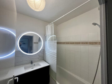 Il est constitué d’une entrée avec placard donnant sur un grand séjour avec un accès direct sur un balcon bien aménagé et d’un coin cuisine bien équipé avec four, plaque électrique et hotte aspirante et machine à laver. Côté nuit, vous retrouverez une chambre avec placards de rangement. vous disposerez également d’une salle de bain avec vasque et baignoire et un WC séparé. Le bien est loué entièrement meublé à neuf et parfaitement équipé.