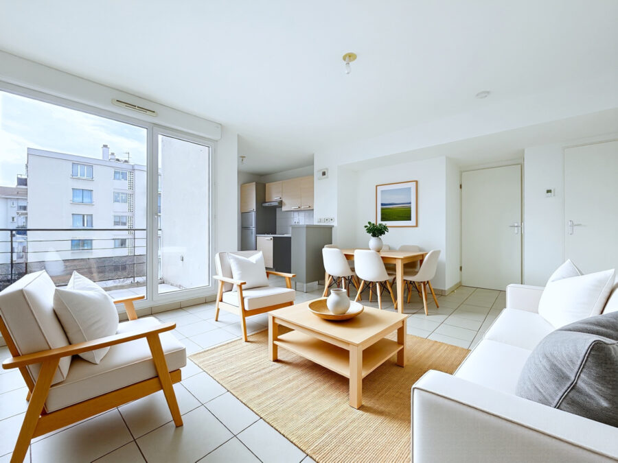 Belle pièce de vie de 25,8 m2 ouvrant sur un balcon agréable de 4,73 m2, idéal pour un espace repas extérieur.